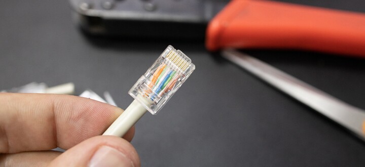Comece cortando o cabo de rede no comprimento desejado usando um alicate de corte. Certifique-se de cortar as extremidades do cabo com uma lâmina afiada para obter um corte limpo.