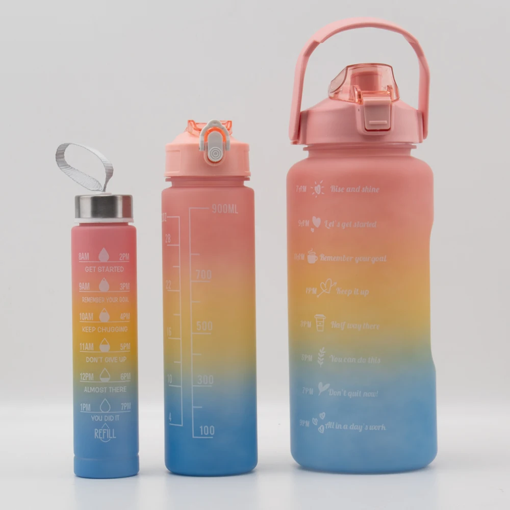 Apresentamos o Kit de 3 garrafas de água coloridas, perfeito para se manter hidratado com estilo! Este conjunto exclusivo inclui três garrafas com tamanhos diferentes, atendendo a todas as suas necessidades de hidratação.